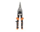 Slowly guide the tin snips through the metal, making sure to keep the cut straight.