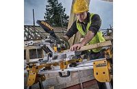 Mitre saws consist of a circular cutting blade held on a swivelling arm over a small platform. The platform has a guide that can be adjusted and set at various angles. They are designed to make cuts at different angles in wood, plastic, alloys and nonferrous metals. This makes them ideal for cutting skirting boards, door frames, picture frames, etc. Some models (called compound mitre saws) have a tilting blade to cut bevelled edges. And some have a sliding mechanism that moves the blade back and forth, allowing you to cut larger pieces of material with a greater thickness, such as fence posts.