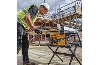 Table saws are portable saws consisting of a fixed circular blade jutting out of the top of a table. Unlike circular saws, the blade spins in a stationary position. The user pushes the material into the blade to be cut. They are designed to cut sheet materials such as wood, plywood, MDF, plastic and soft metals. They cut straight lines but can cut angles (using a mitre gauge), and some also have tilting blades for cutting bevels. The blade can also be moved up and down to control the depth of the cut.